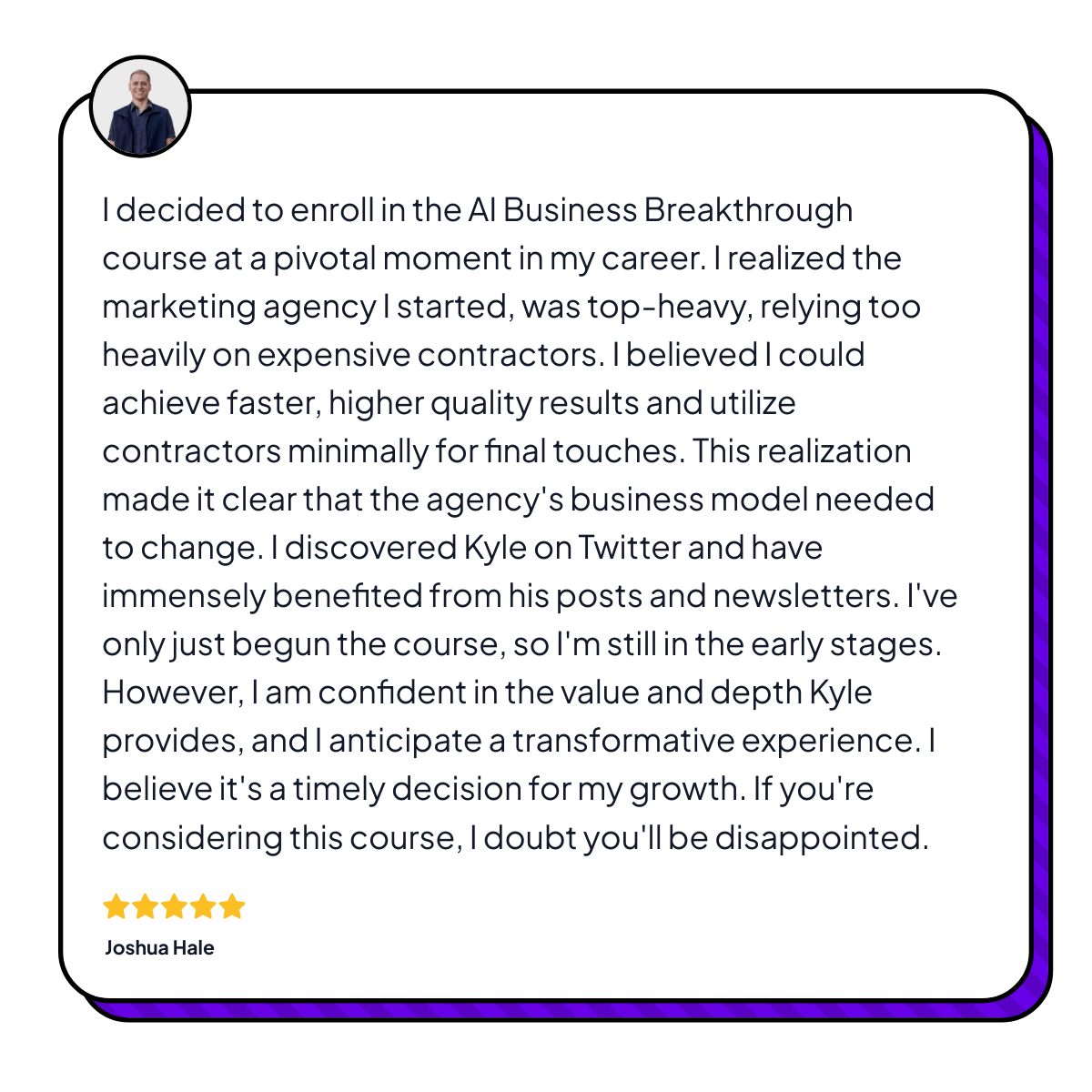 Instant access to AI Business Playbook + Free Sub to Kyle's popular AI email newsletter + Free Invite to AI Community